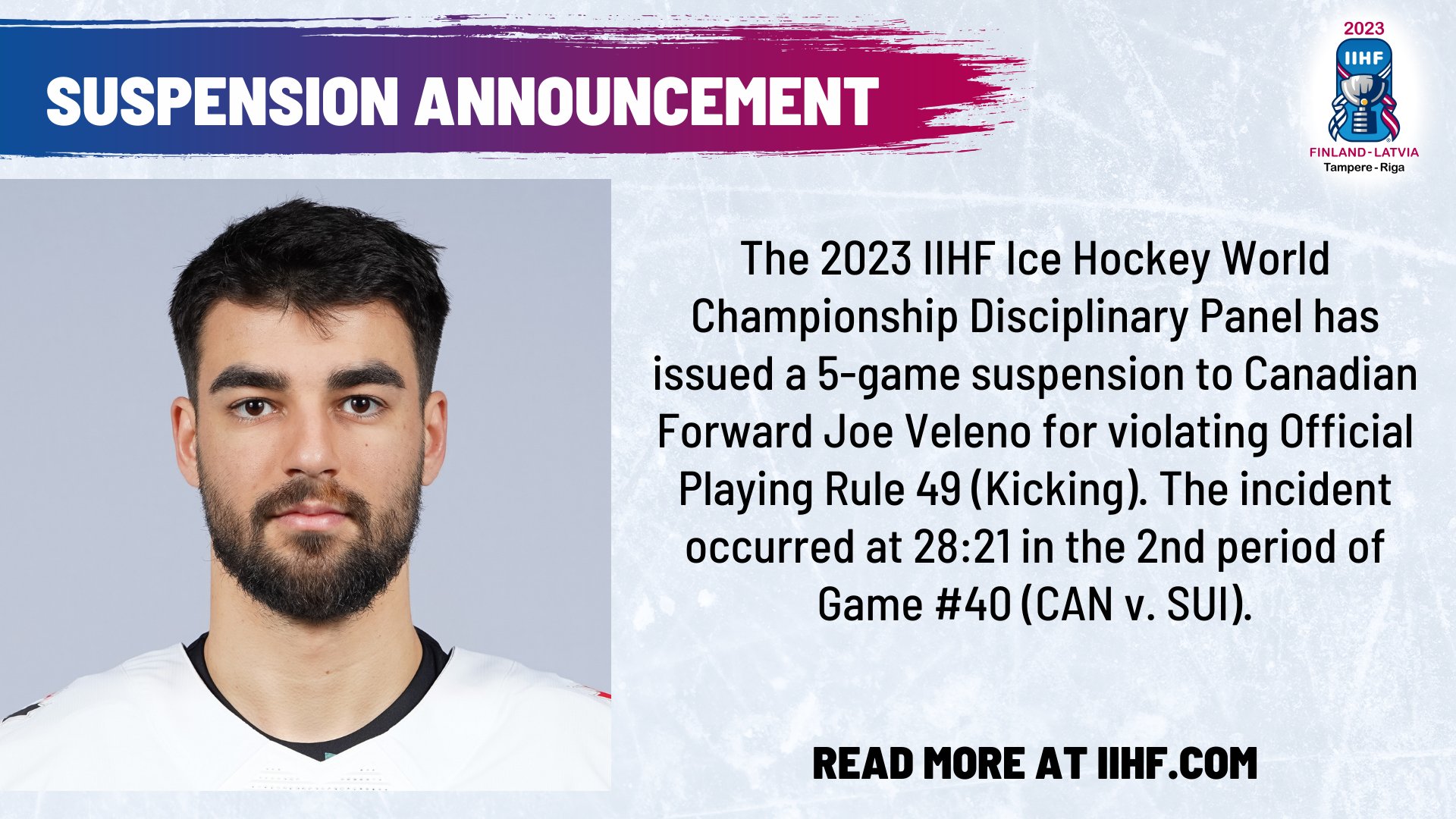 Red Wings Veleno Suspended Five Games By Iihf